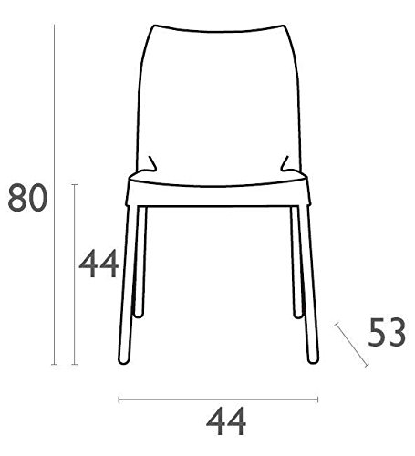 MISURE - sedia bistrot in plastica colorata e moderna, ideata senza braccioli per permetterti di inserirla in qualsiasi ambiente. La scheda: altezza: 80 cm | Larghezza: 44 cm | Profondità: 53 cm | altezza seduta: 44 cm | Capacità massima di peso: 160 kg