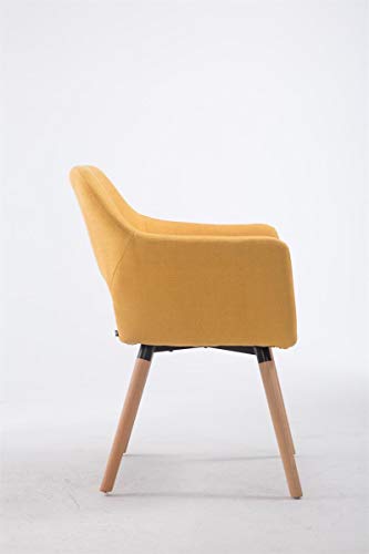 CLP Sedia Ospite Auckland In Stoffa I Sedia Sala Da Pranzo I Poltrona Con Schienale E Braccioli | Sedia Design In Legno, Colore:giallo, Colore del telaio:natura