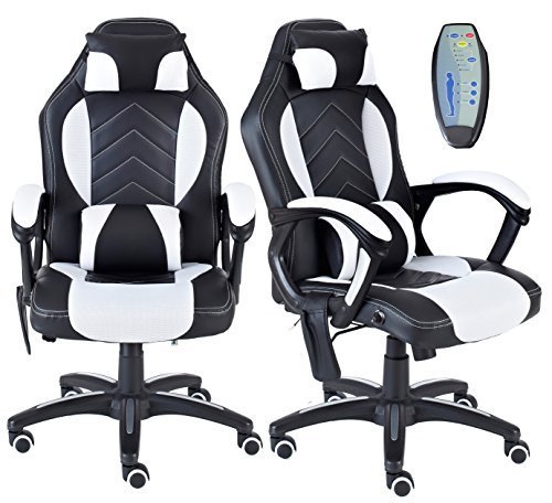 NEO®, sedia in pelle PU con supporto lombare e funzione di massaggio, ideale come sedia per ufficio, gioco White & Black