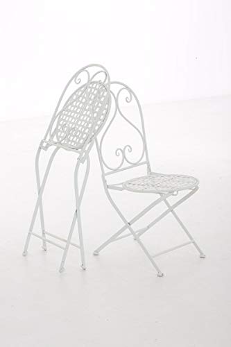 CLP Sedia Pieghevole in Ferro VAHAN - Sedia da Giardino in Stile Rustico Nostalgico - Sedia in Metallo da Balcone con Schienale - Sedia Bistrot Shabby Chic per Outdoor Bianco