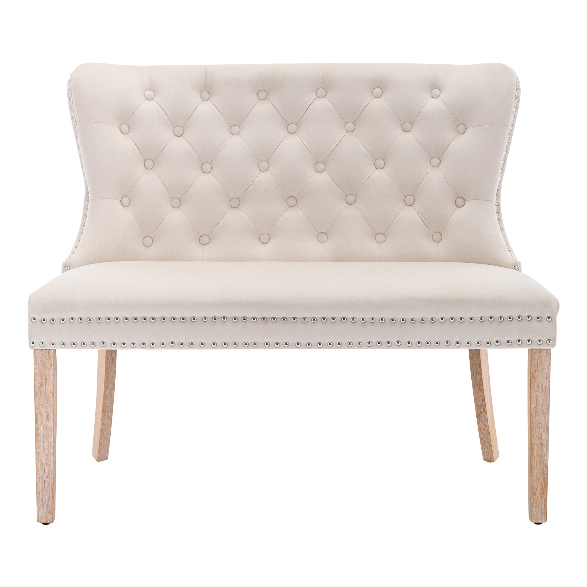 Il nostro divanetto in tessuto effetto velluto beige è un esempio di eleganza e comfort moderno. Rivestita in tessuto effetto velluto di alta qualità, questa seduta offre un comfort imbattibile grazie ai cuscini imbottiti con schiuma ad alta densità e una struttura sostenuta da molle a S per garantire supporto e durata. Le gambe in legno di quercia massiccio, dotate di piedini regolabili e resistenti all'usura, non solo assicurano stabilità ma aggiungono un tocco di naturalezza e modernità al design. Perfetto sia per la sala da pranzo che come elemento d'arredo nel salotto, questo divanetto moderno è ideale per rilassarsi, leggere o godersi momenti piacevoli in due.
