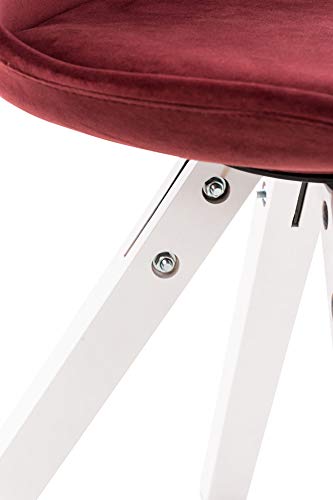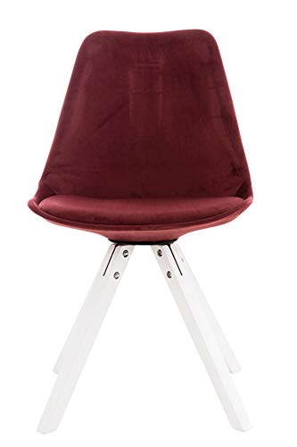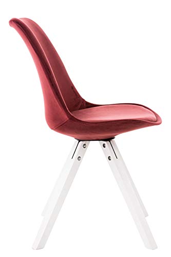 CLP Sedia da Pranzo Pegleg in Velluto I Sedia Design Rosa Scandinavo Imbottita in Legno con Gambe Quadrate I Sedia Ospite Imbottita, Colore:Rosso, Colore del Telaio:Bianco