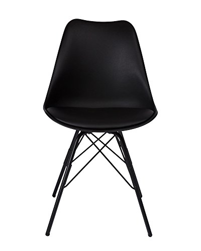 Materiali di alta qualità: la sedia di design ha una seduta in plastica nera di alta qualità. La seduta è imbottita con un cuscino in similpelle nera.
