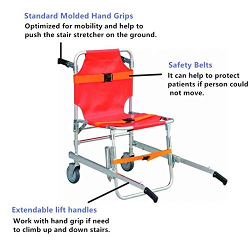 NZBⓇ Sedia per Scale EMS - Telaio Leggero e Pieghevole, Sedia per Scale in Alluminio Ambulanza Pompiere Pista di evacuazione Scala Leggera Sedia a rotelle per Scale con Fibbie a sgancio rapido