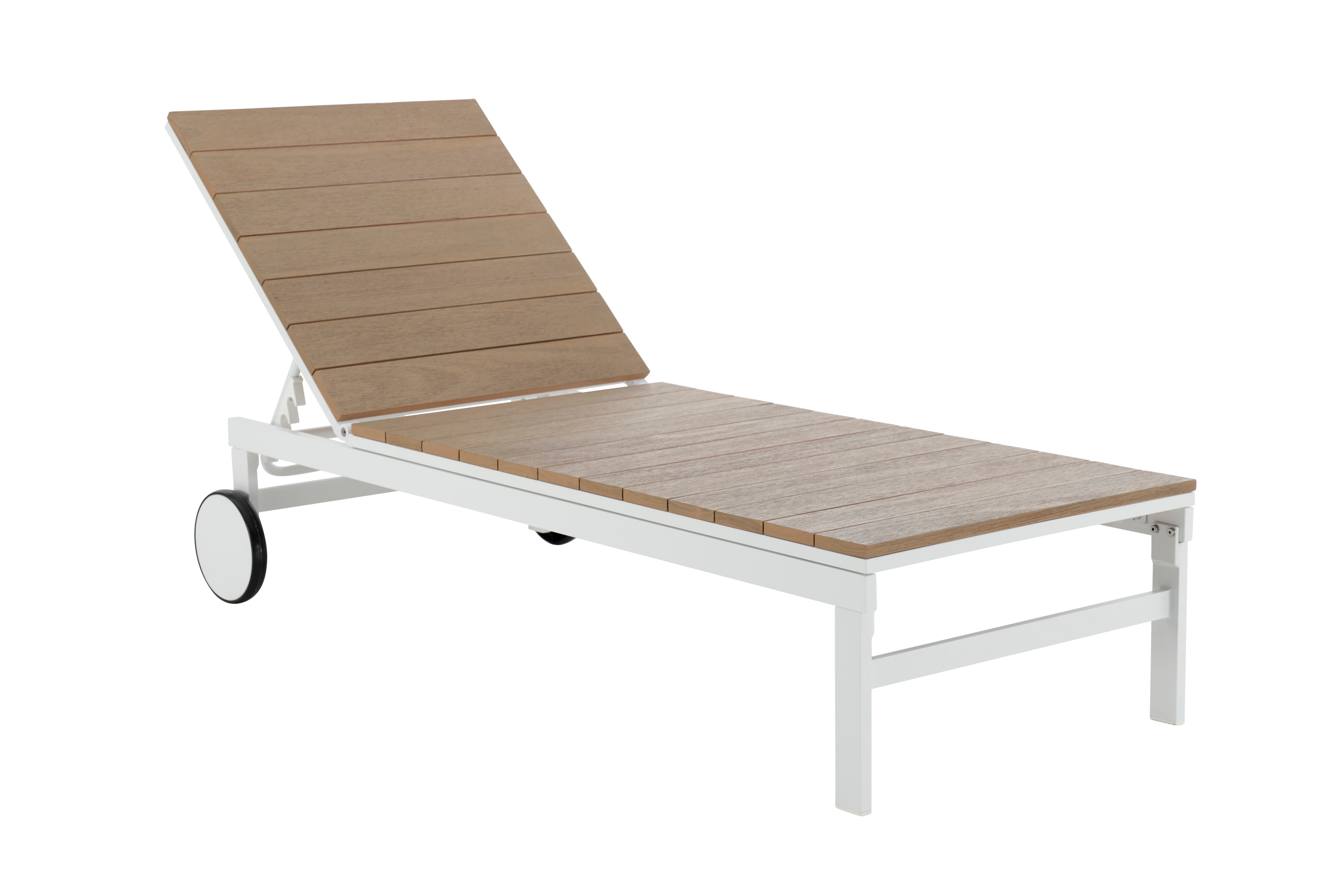 Sedia a sdraio di colore Bianco con materiale di seduta Legno.. Design ideale per essere combinato con il resto della gamma SAN DIEGO. La struttura in alluminio garantisce durabilita' durante gli anni e resistenza agli agenti corrosivi.. Grazie alle ruote, facile da muovere in giardino.. Materiali leggeri ma resistenti, alluminio resistente agli agenti esterni. Certificazione FSC Eucalyptus, che garantisce qualita' e naturalezza.