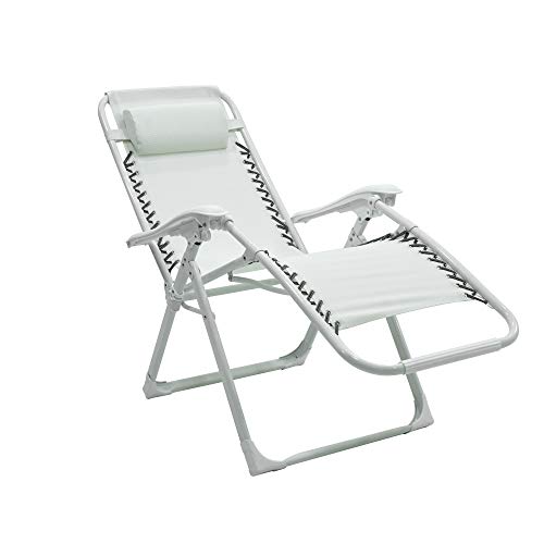 Sedia sdraio pieghevole esterno reclinabile - zero gravity con poggiatesta per il tuo relax (Bianco)