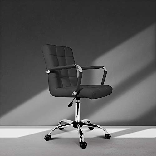 Sedia da ufficio di design classico, ma alla coppia originale e bellissimo rivestimento in finta pelle con vari quadrati che la rendono unica e esclusiva facile da pulire