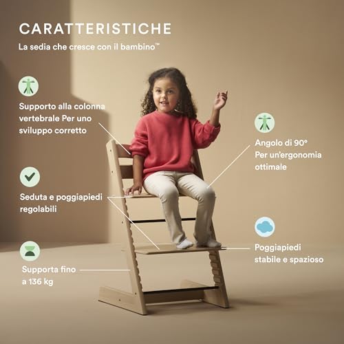 Sedia Tripp Trapp di Stokke, Naturale - Sedia evolutiva e interamente regolabile per neonati, bambini e adulti - Comoda, confortevole ed ergonomica - Modello classico
