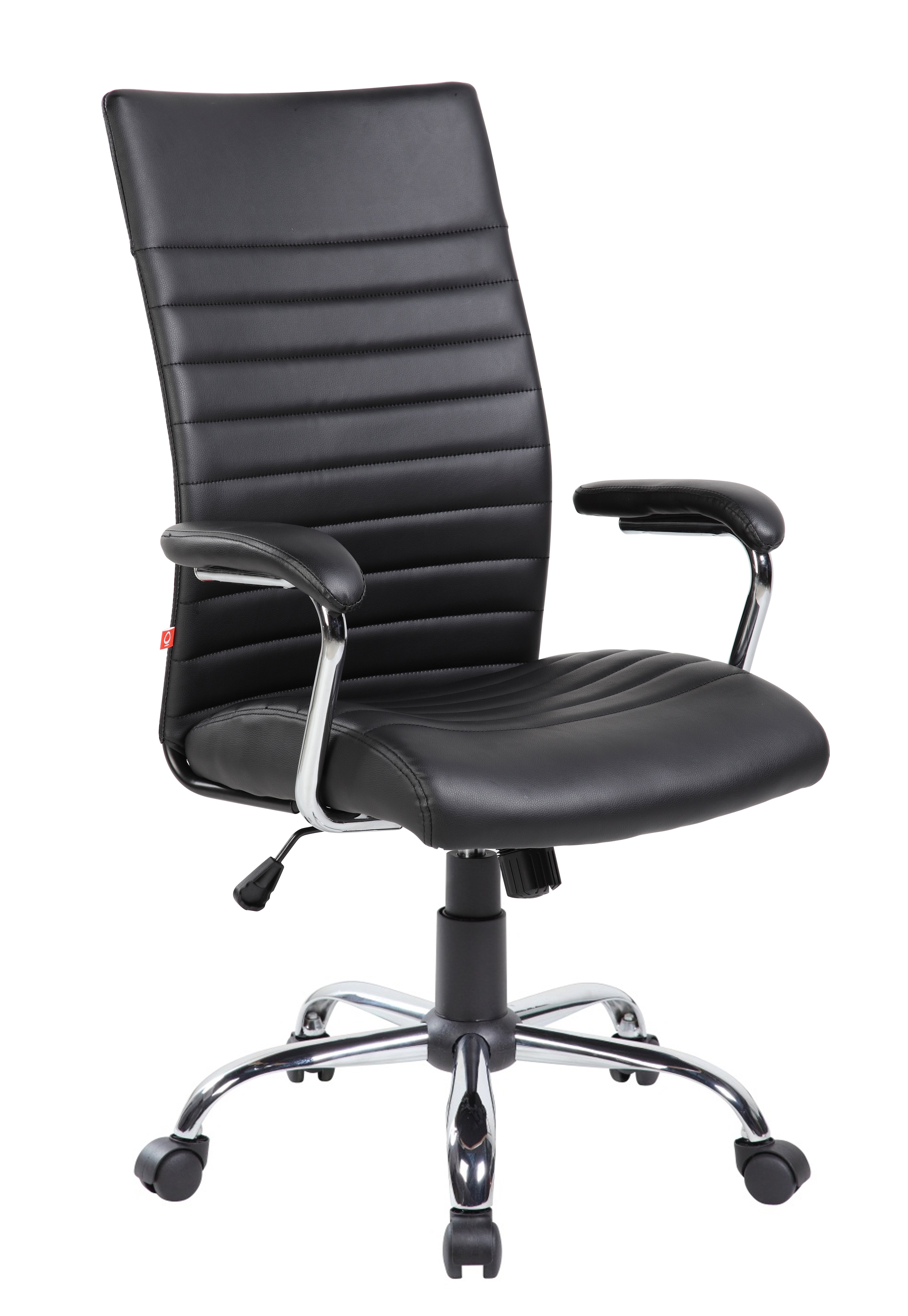 Poltrona Presidenziale, Rivestimento in poliuretano, con ruote piroettanti certificate BIFMA (USA). La struttura e braccioli sono in acciaio cromato. Dotata di sistema di elevazione a gas per la regolazione del sedile in altezza, scorrimento cm. 10. Meccanismo oscillante bloccabile. Regolazione di tensione della spinta e Pistone classe 3 certificato SGS. Dimensioni cm. 65 x 63 x H 108/118