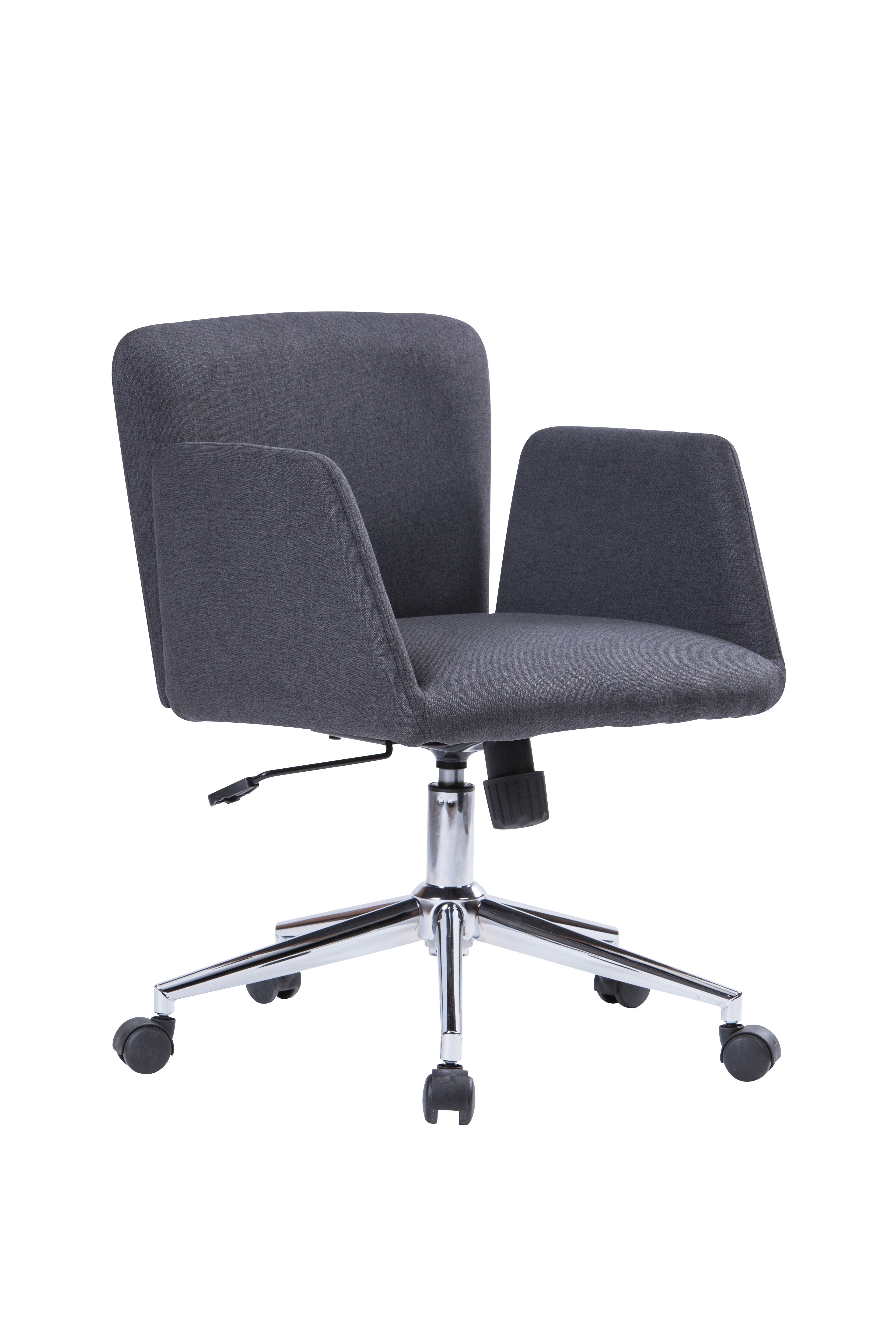 Poltrona Direzionale con Braccioli, Rivestimento imbottito in tessuto, con ruote piroettanti certificate BIFMA (USA). Dotata di sistema di elevazione a gas per la regolazione del sedile in altezza, scorrimento cm. 7,5. Meccanismo oscillante bloccabile. Regolazione di tensione della spinta. Tutta la sedia è certificata SGS. Dimensioni cm. L55 x P54 x H 65/84