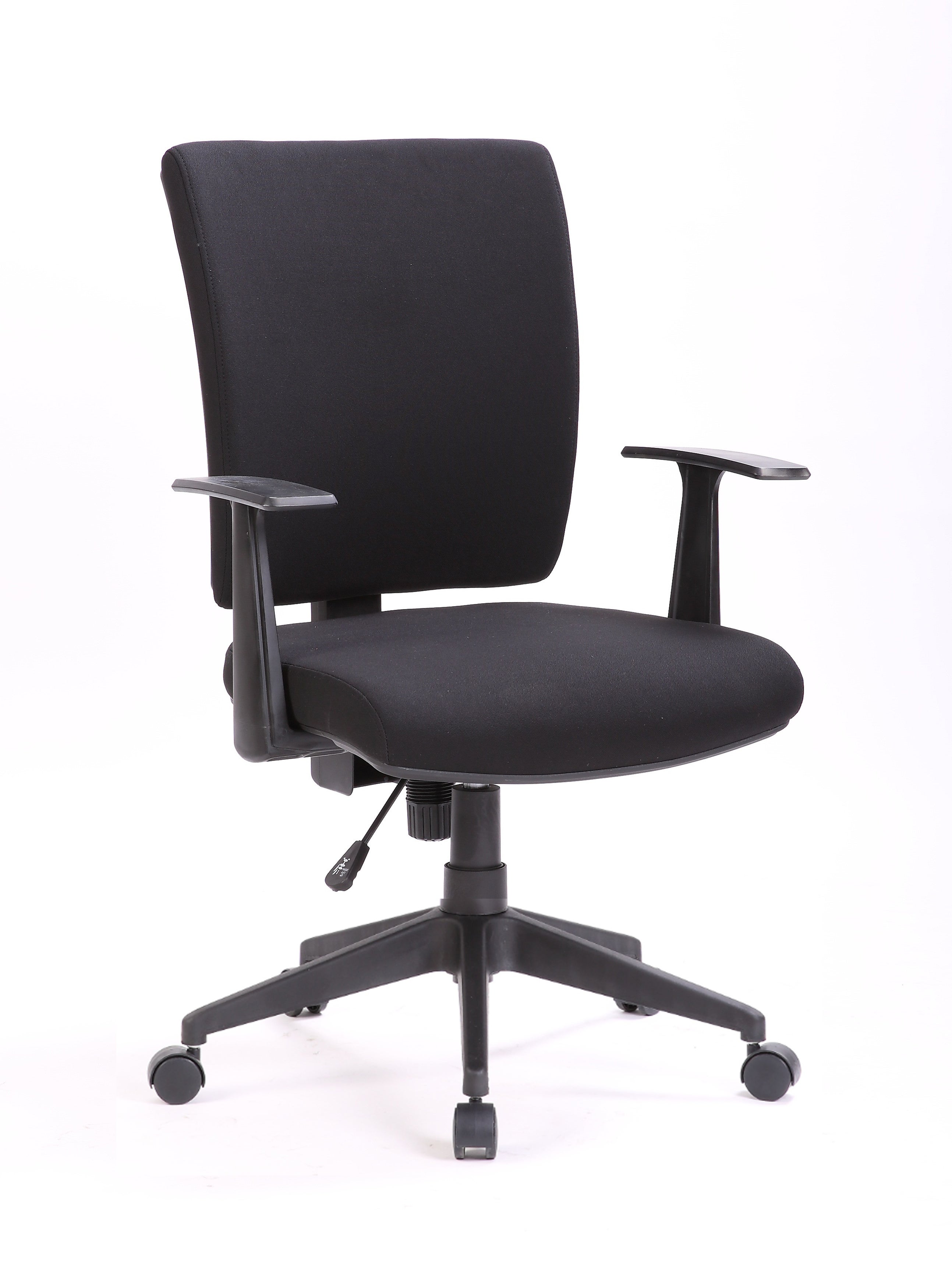 Sedia Operativa Imbottita, Schienale e sedile in tessuto imbottito, con ruote piroettanti certificate BIFMA (USA). Dotata di sistema di elevazione a gas per la regolazione del sedile in altezza, scorrimento cm. 10. Meccanismo oscillante bloccabile. Regolazione di tensione della spinta. Pistone classe 3 certificato SGS. Dimensioni cm. 65 x 61 x H 98/107