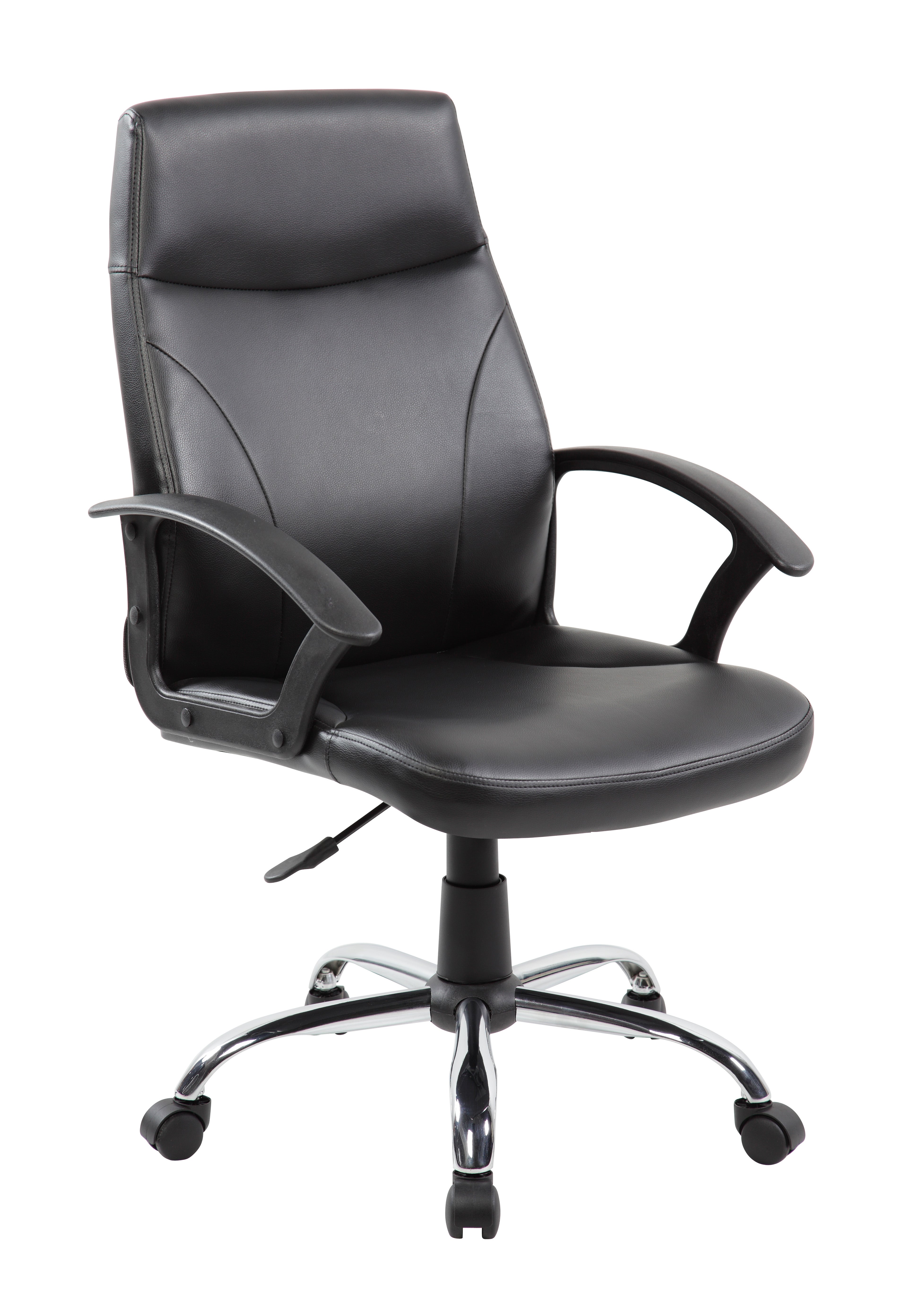 Poltrona Direzionale, Rivestimento in poliuretano, con ruote piroettanti certificate BIFMA (USA). Sistema di elevazione a gas con la regolazione del sedile in altezza, scorrimento cm. 10. Compresno anche meccanismo oscilante bloccabile, Regolazione di tensione della spinta e Pistone classe 3 certificato SGS. Dimensioni cm L 59 x P 60 x H 100/110