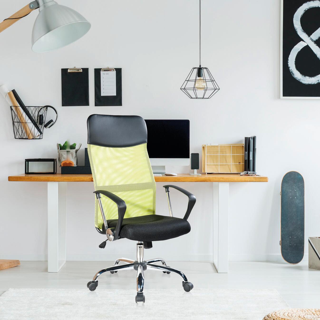 • Durante lo smartworking o il lavoro in ufficio è necessario avere una sedia ergonomica. La poltrona ufficio è adatta per le tue ore di lavoro intenso. Ha lo schienale sagomato che sostiene la zona lombare riducendo il rischio di dolori articolari e muscolari. Il poggiatesta è realizzato in morbido pu. Lo schienale e la seduta sono rivestiti in tessuto traforato perfetto per lasciare traspirare la schiena ed evitare l'accumulo di sudore. E' una sedia con ruote che ti permette di ruotare a 360° e spostarti senza doverti alzare. Ha una leva con cui puoi regolare l'altezza della seduta in base alle tue necessità. Inoltre lo schienale può essere reso flessibile e dondolare grazie al pomello rotante posto al di sotto della seduta. E' adatta sia come poltrona presidenziale in ufficio, sia come sedia per lavoro da casa. Disponibile in diversi colori. • Misure sedia seduta abbassata: H 113 cm x L 57,5 cm x P 58,5 cm - Misure sedia seduta alzata: H 123 cm x L 57,5 cm x P 58,5 cm - Larghezza seduta: L 48,5 cm - Altezza min/max seduta: 48/58 cm - Altezza schienale: 68 cm - Misure braccioli seduta abbassata: H 66 cm - Misure braccioli seduta alzata: H 76 cm cm - Carico max: 120 Kg • Colore: Nero, Verde • Montaggio: La sedia ti arriverà smontata. Istruzioni e kit di montaggio inclusi. Adatto per smartworking. Adatto per ufficio. Altezza regolabile. Schienale traforato traspirante. Ruote girevoli