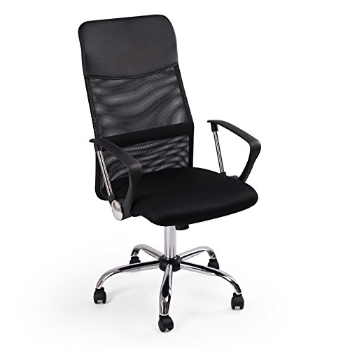 Sedia da Ufficio Poltrona Scrivania - Direzionale Girevole | Ergonomica | Ruote Bloccanti e Braccioli | Altezza e Inclinazione Regolabile | In Pelle Artificiale e Nylon Traspirante | Color Nero