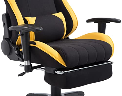 CLP Sedia Ufficio Racing Shift V2 In Stoffa I Poltrona Gaming Reclinabile Ergonomica Con Doppio Cuscino, Colore:nero/giallo, Poggiapiedi:con poggiapiedi