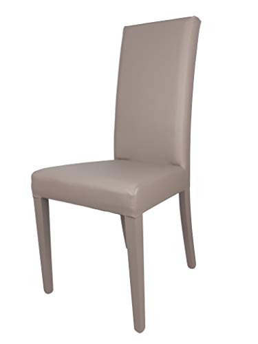Set 4 Sedie Denver, Imbottita in Pelle Rivestita, Vari Colori, Resistente, Struttura in Legno di Faggio, Interno Casa Cucina (Tortora)
