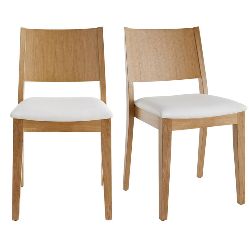 Le sedie MELVIL rivisitano l'intramontabile e sempre attuale sedia in legno! Ispirata a codici vintage, la struttura dalle linee epurate in legno chiaro è resa più moderna da un elegante rivestimento in poliuretano bianco . Un abbinamento audace... e soprattutto di grande successo! Le loro silhouette armoniose si adattano a svariati ambienti, aggiungendo un tocco di delicatezza ed eleganza alla zona pranzo. Con le loro forme equilibrate, vincono la difficile sfida di combinare comfort e design. Costituite da una robusta base in legno massello di rovere, da un ampio schienale curvo impiallacciato in rovere che si adatta alla forma della schiena e da una piacevole seduta imbottita (35 kg/m³), queste sedie in legno moderne sono perfette per trascorrere momenti conviviali con la famiglia o gli amici intorno a una bella tavolata! Estremamente funzionali, le sedie MELVIL sono impilabili ! A seconda del numero di ospiti, andranno disposte intorno a un tavolo allungabile o impilate per
