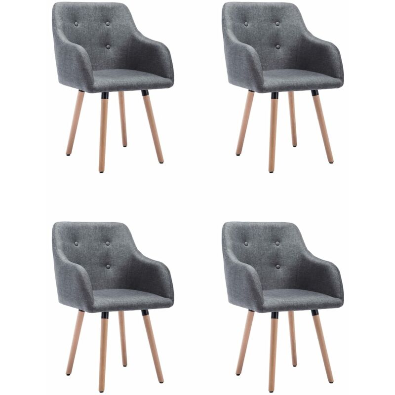 Questo set di 4 sedie da pranzo dal design moderno sono un vero colpo d'occhio in ogni stanza. Le sedie con braccioli sono rivestite in tessuto morbido al tatto per offrire il massimo comfort. La struttura in metallo e le gambe in legno di faggio forniscono sostegno e stabilità all'intera struttura, rendendo le sedie estremamente resistenti. Ogni sedia ha un design a 4 bottoni, che aggiunge un fascino favoloso alle sedie da pranzo. Colore: Grigio scuro Materiale: Tessuto, metallo, faggio Dimensioni: 55 x 52 x 84 cm (L x P x A) Dimensioni del sedile: 44 x 40 cm (L x P) Altezza della seduta da terra: 48 cm Altezza del bracciolo da terra: 61 cm Altezza schienale: 40 cm Design imbottito con bottoni Assemblaggio richiesto: Sì La consegna include: 4 Sedie
