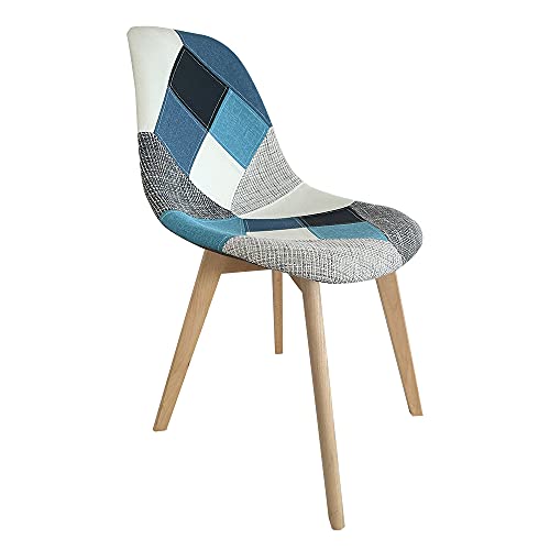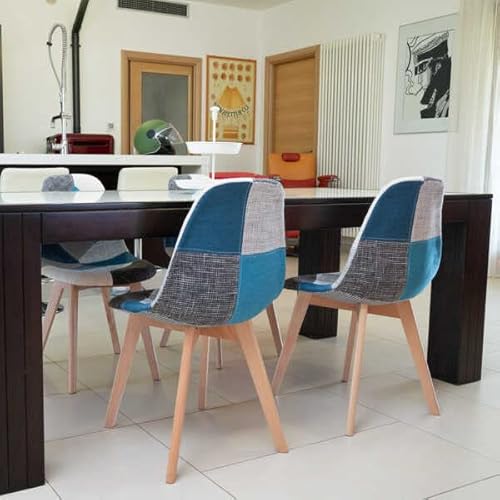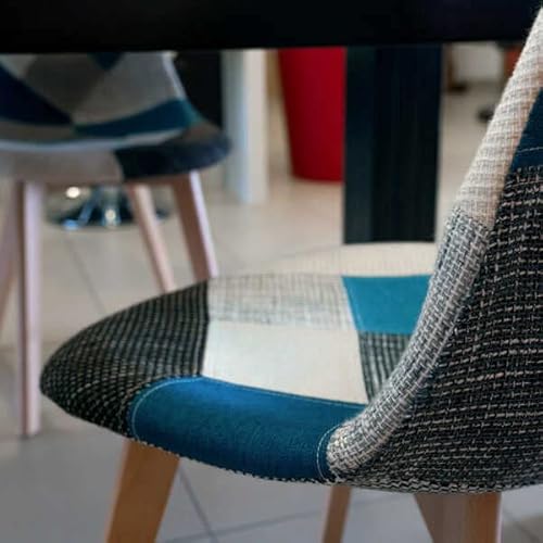Sedie da pranzo imbottite Patchwork in set da 2, 4 o 6 sedie con gambe in legno (Blue, 2)