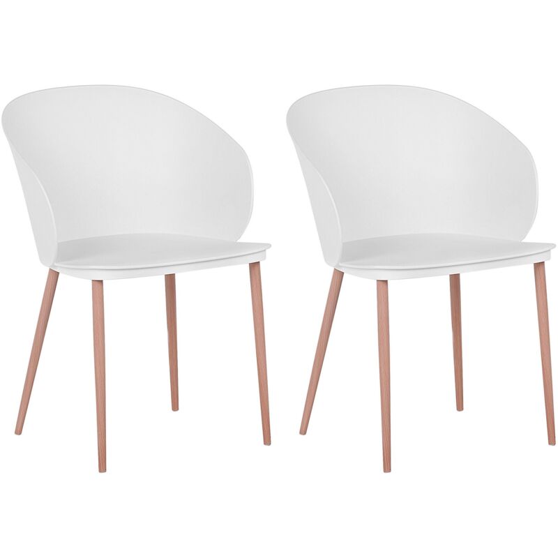 Set di 2 sedie da pranzo in materiale sintetico dallo stile moderno. L'ampia seduta e lo schienale semicircolare conferiscono a questa sedia una forma geometrica e moderna, enfatizzata ancora di più dalle gambe strette. Grazie alla classica combinazione di colori in contrasto, la sedia può essere abbinata a vari arredi e spazi abitativi. Le gambe in metallo sono state dipinte in un colore che richiama il legno chiaro. Dettagli: Tipo di prodotto: Sedia da pranzo Stile: Moderno Colore principale: Bianco Colore della struttura: Legno chiaro Tipo di materiale: Materiale sintetico Materiale principale: Materiale sintetico Materiale secondario: Metallo Materiale delle gambe: Metallo Materiale della seduta: Materiale sintetico Poggiabraccia: No Finitura: Opaca Impilabile: No Dimensioni: Profondità: 52 cm Altezza della seduta: 46 cm Larghezza: 48 cm Altezza: 81 cm Dimensioni seduta: 48x43 cm Peso: 6 kg Portata massima: 120 kg L'offerta include: 2 x Sedia Caratteristiche chiave: Ampia e comoda