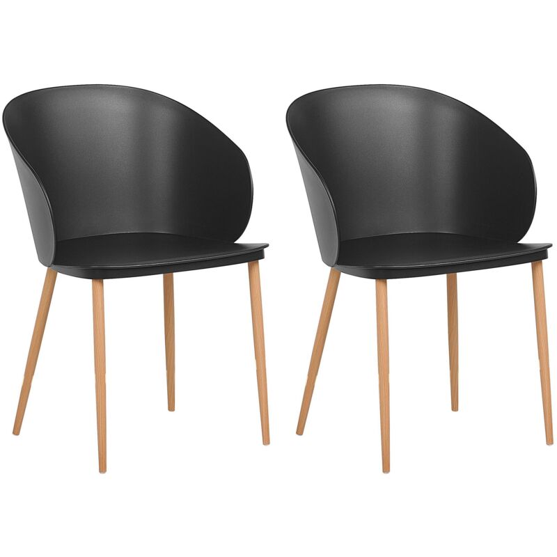Set di 2 sedie da pranzo in materiale sintetico dallo stile moderno. L'ampia seduta e lo schienale semicircolare conferiscono a questa sedia una forma geometrica e moderna, enfatizzata ancora di più dalle gambe strette. Grazie alla classica combinazione di colori in contrasto, la sedia può essere abbinata a vari arredi e spazi abitativi. Le gambe in metallo sono state dipinte in un colore che richiama il legno chiaro. Dettagli: Tipo di prodotto: Sedia da pranzo Stile: Moderno Colore principale: Nero Colore della struttura: Legno chiaro Tipo di materiale: Materiale sintetico Materiale principale: Materiale sintetico Materiale secondario: Metallo Materiale delle gambe: Metallo Materiale della seduta: Materiale sintetico Poggiabraccia: No Finitura: Opaca Impilabile: No Dimensioni: Profondità: 52 cm Altezza della seduta: 46 cm Larghezza: 48 cm Altezza: 81 cm Dimensioni seduta: 48x43 cm Peso: 6 kg Portata massima: 120 kg L'offerta include: 2 x Sedia Caratteristiche chiave: Ampia e comoda
