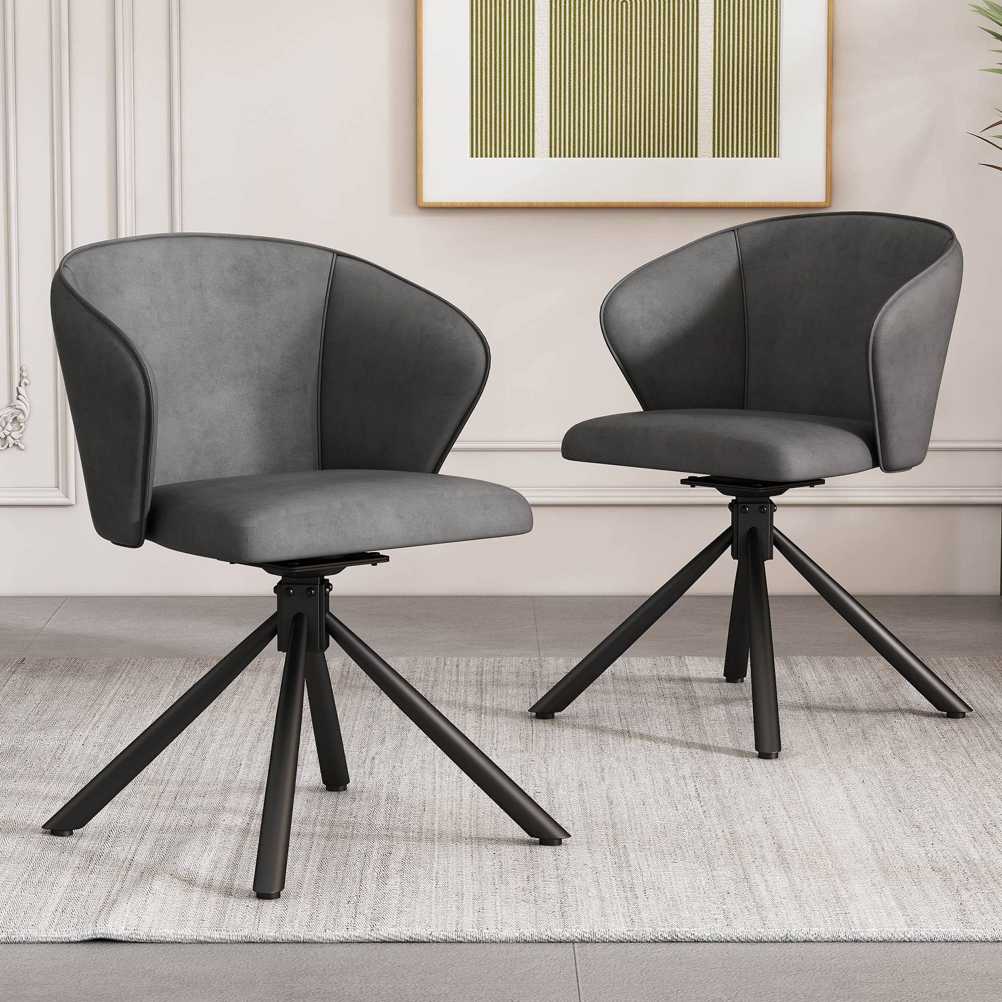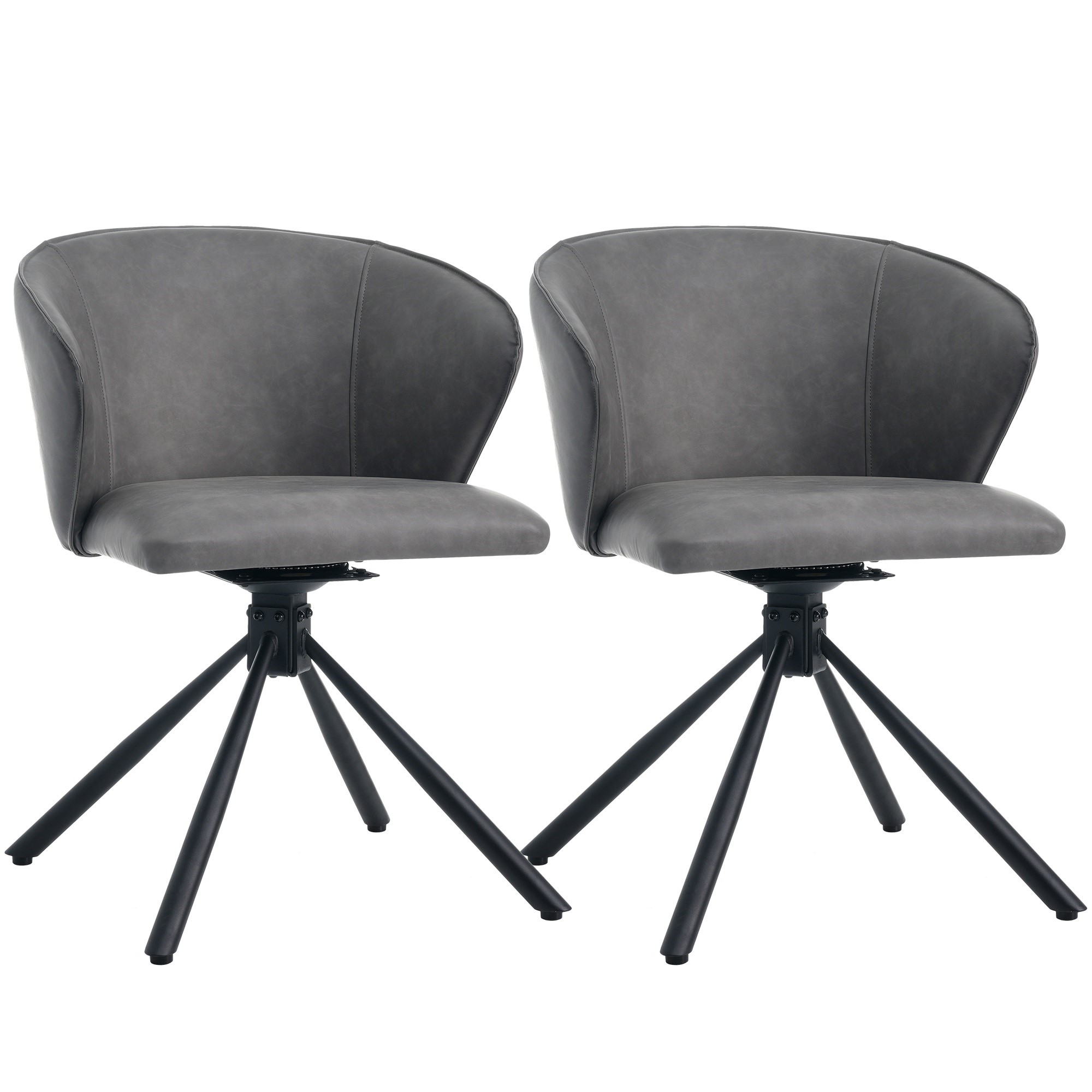 Set di 2 Sedie da Pranzo Moderne e Girevoli in PU Grigio. Queste sedie da pranzo combinano eleganza e funzionalità con il loro design moderno e la finitura in PU grigio, facile da pulire e resistente all'usura. La struttura è realizzata in legno massiccio e metallo, garantendo robustezza e una capacità di carico fino a 150 kg. Ogni sedia ha una seduta confortevole e girevole che permette una maggiore flessibilità e adattabilità a diverse situazioni, ideale per conversazioni, lavoro o relax. Grazie a un montaggio semplice e veloce di soli 5 minuti, queste sedie rappresentano una soluzione pratica ed elegante per ogni ambiente domestico.