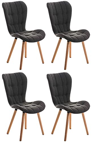 CLP Set 4 Sedie Chic Sala Da Pranzo Elda In Tessuto I Sedia Design Salotto Imbottita E Trapuntata I Seduta Tavolo Gambe In Legno, Colore:grigio scuro