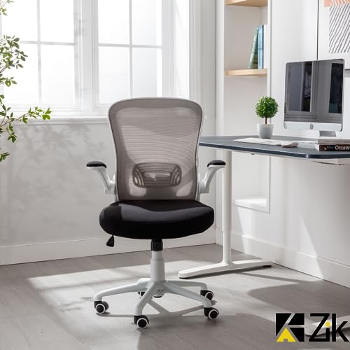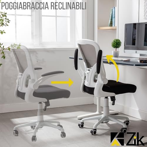 ZIK Set 2 Sedie da Ufficio Ergonomica con Braccioli Pieghevoli, Supporto Lombare, Altezza Regolabile- 62x63x129 (White)