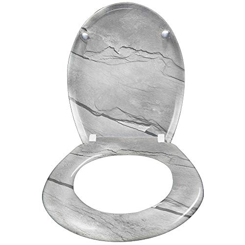 LZQ Sedile WC con abbassamento automatico sedile WC universale misura sedile WC in plastica rigida antibatterico, in duroplast, motivo pietra
