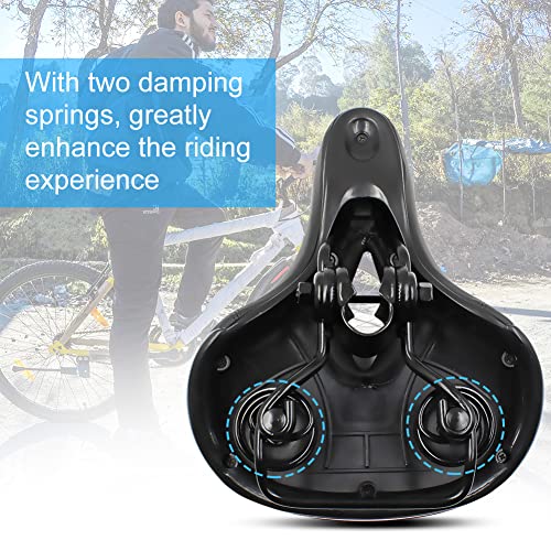 【Doppia palla d'urto e design del nastro riflettente】 Le due palle d'urto sotto il sedile della bicicletta sono progettate con una buona elasticità e resistenza per alleviare i colpi causati dalle vibrazioni anche su buche e strade accidentate, ottimizzando perfettamente l'esperienza di guida. Lo speciale design del nastro rosso di avvertimento sul retro della sella aumenta la sicurezza della guida notturna.