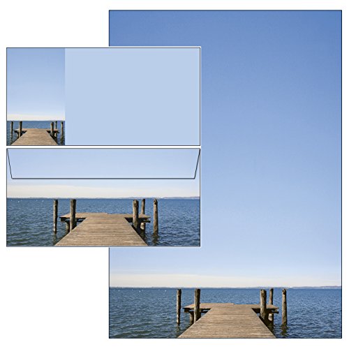 Seeblick 51005+61005 - Set di carta da lettere e buste formato DIN lungo, senza finestra, 25 fogli di carta da lettere + 25 buste, 51005