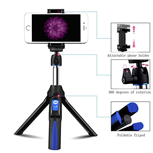 Seedoo Bastone Selfie,Selfie Stick Monopiede Telescopico + Wireless Bluetooth di Scatto Remoto + Telefono Supporto + Mini Treppiede per Smartphone, iPhone 7/7 Plus,Samsung Galaxy A500/S5/S6/S7,Huawei P8/P9 Lite,Moto G4 Play,Oukitel U7 Plus e Fotocamere Compatte (Blu)