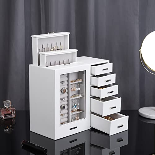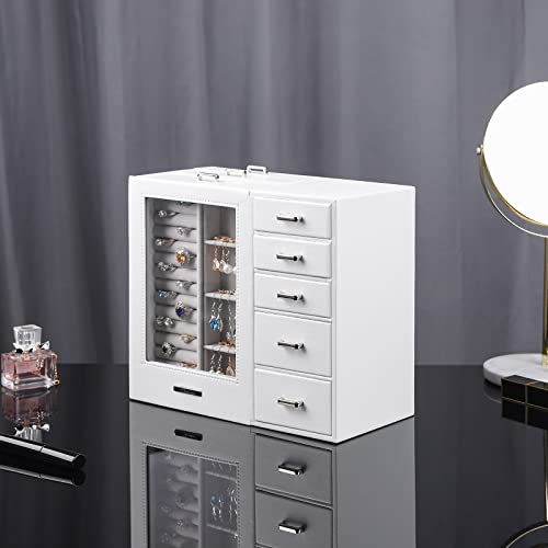 Seelux Scatola Portagioie Grande,Porta Gioielli Donna con 7 Cassetti, Finestra Trasparente, per Braccialetti Orecchini Anelli Collane Orologi Monili, Idea Regalo, Bianco