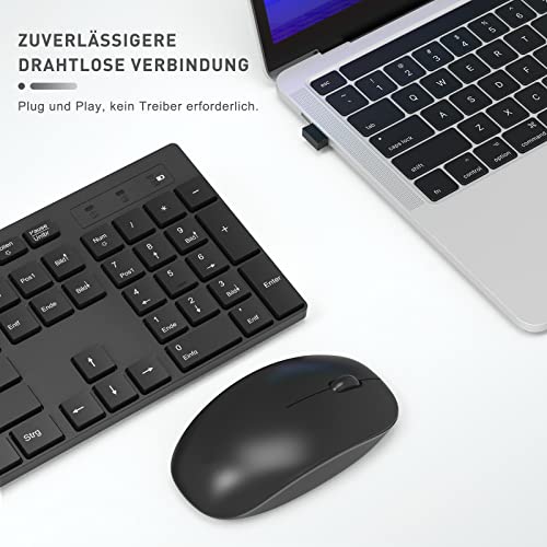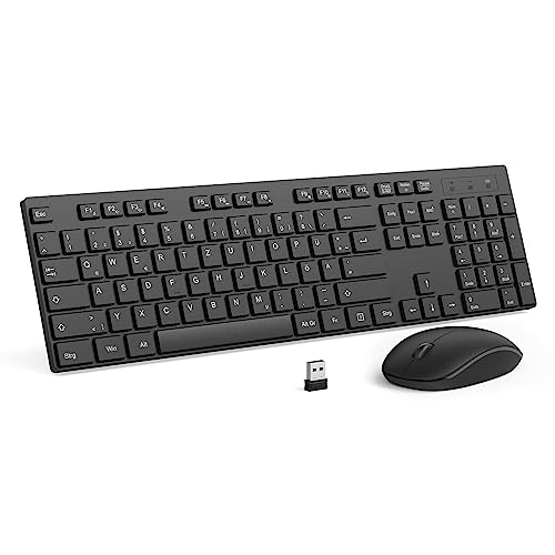 Seenda Tastiera e mouse wireless, tastiera wireless full size con ricevitore USB, silenziosa con 1400 DPI, layout QWERTZ per computer, laptop, Windows, MacOS (nero)