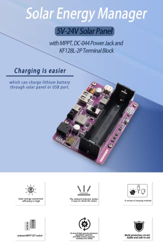 SEENGREAT Solar Energy/Power Management Module for 5V-24V Solar Panel, Supports Solar Panel or USB port Battery Charging