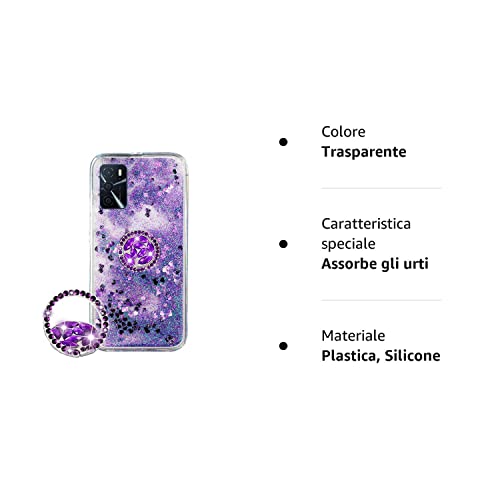 SEEYA Case Seeya per Oppo A16s/A16/A54s - Cover in silicone liquido glitterato con anello, custodia glitterata viola fluida acqua sabbiosa con diamante trasparente e cristallo duro in silicone anti