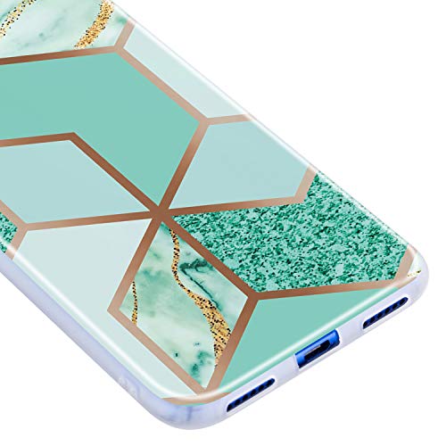 SEEYA Cover Silicone per Huawei Y7 2019 Custodia Marmo Sottile Gomma Morbido Caso Design Cubo Verde Blu Gel TPU Bumper Flessibile AntiGraffio Resistente ai Graffi Protezione Cover