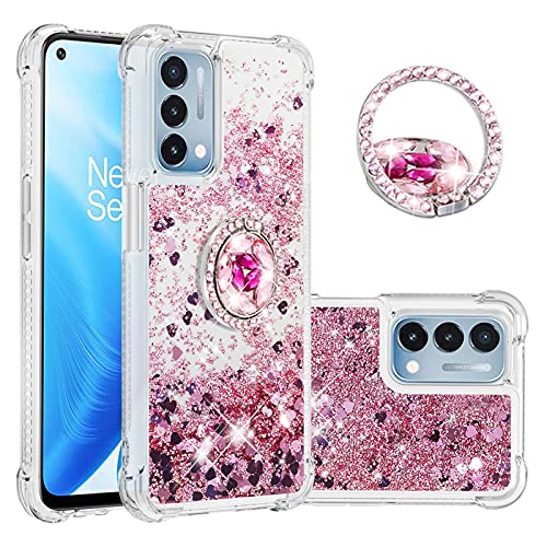 Seeya per Oppo A74 5G - Cover in silicone liquido glitterato con anello di supporto glitter cristallo 3D custodia sottile morbida trasparente in TPU antiurto cover oro rosa