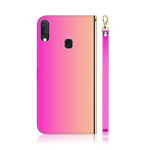 SEEYA Cover Specchio per Samsung Galaxy A20e Custodia Rosa Giallo Gradiente Pelle Portafoglio Flip Cover a Libro Cristallo Brillantini Mirror Tasca per Carte Magnetica Stand Supporto Protezione
