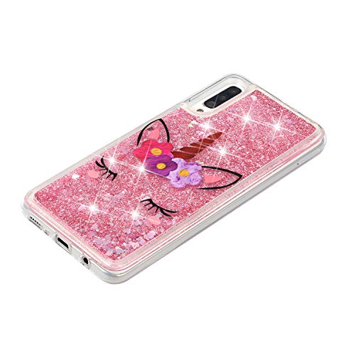 SEEYA Custodia per Samsung Galaxy A50 Cover Brillantini Glitter Bling Liquido Soft TPU Silicone Cover Modella Unicorno Protettivo Morbido Bumper Gel Skin Case Trasparente Quicksand Case