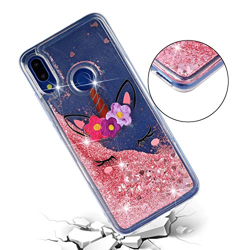 SEEYA Custodia per Xiaomi Redmi Note 7 Cover Brillantini Glitter Bling Liquido Soft TPU Silicone Cover Modella Unicorno Protettivo Morbido Bumper Gel Skin Case Trasparente Quicksand Case