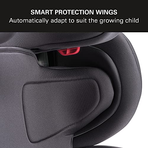 Poggiatesta regolabile in altezza con monocomando centrale: segue la crescita del bimbo. Schienale adattivo: grazie alla forma curva, si adatta al sedile dell'auto fornendo maggiore stabilità