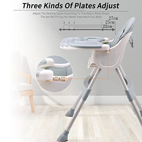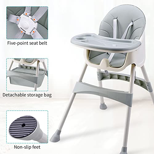 Seggiolone - Articoli per bambini Seggiolone da 6 mesi, Seggiolone regolabile in altezza, Doppio vassoio, Larghezza regolabile, Facile da pulire, Imbracatura a 5 punti - Grigio