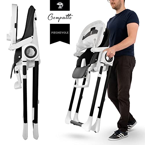 Seggiolone Pappa Regolabile e Pieghevole - 7 Livelli Diverse, Schienale Bambino Pieghevole 5 Posizioni, Ripiano Smontabile, Vassoio a Clip (Facile da Pulire) - Nero