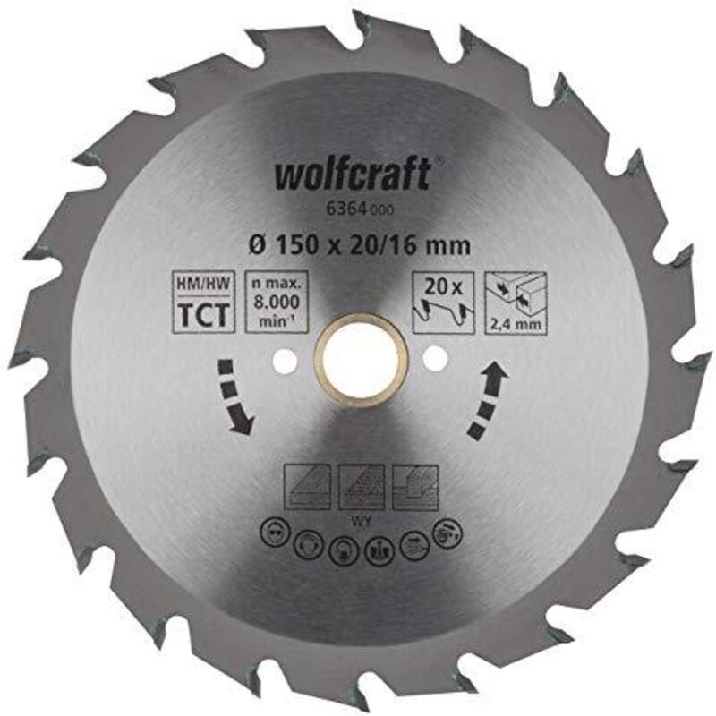 Wolfcraft 1 Lame per seghe circolari manuali serie verde (tagli rapidi, medio/grossi) ø150mm- 6364000 Tagli rapidi, medio/grossi lama da taglio TCT con dentatura alternata e basso numero di denti per tagli trasversali e longitudinali rapidi, medio/grossi in legno, pannelli di masonite, compensato, paniforte e pannelli profilati lunga durata Descrizione del prodotto Le lame per seghe circolari manuali di questa serie sono la scelta ideale per eseguire lavori su legno, pannelli di masonite, compensato, paniforte e profili per i quali la rapidità di lavorazione è essenziale e la qualità di taglio medio-grossa è accettabile. Le lame sono realizzate in TCT altamente resistente al calore e garantiscono una lunga durata. Anche la geometria alternata dei denti contribuisce a una lunga durata e garantisce un taglio a bassa rumorosità. Con il basso numero di denti si possono effettuare tagli rapidi medio/grossi longitudinali e trasversali nella venatura del materiale. Adatto per il materiale