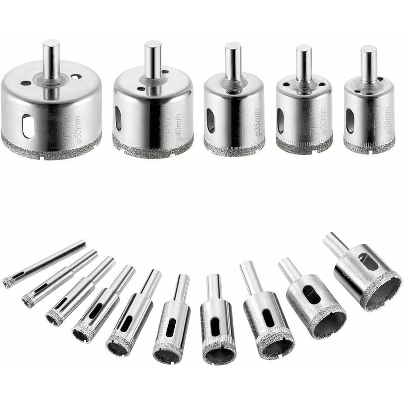 FACILE DA USARE Le punte pilota centrali sono per legno, metallo, ecc. Ecco come puoi mantenere la punta del trapano sul bersaglio: a- Puoi creare il tuo compensato - guida in plastica o anche in cartone. Devi solo tenere la punta in posizione finché non segna i segni iniziali. b- È possibile iniziare a forare ad angolo, con il bordo della punta che forma una scanalatura a C e quindi portare il punta del trapano verticalmente. c- Puoi guidare manualmente la punta con una spugna umida. Industria applicabile: adatta per la lavorazione di pietra, piastrelle, ceramica, vetro e granito, ecc. Il pacchetto include: 1 * set di punte diamantate Materiale: ferro, diamantato sulla testa Colore : argento Quantità: 15 pezzi CONSIGLI: Il rivestimento diamantato elettrolitico si consuma se lo strumento si surriscalda. Non lasciare mai che la punta si asciughi. Ecco come usare l'acqua per raffreddare lo strumento: a- Puoi costruire una mini diga d'acqua attorno al foro con la malta per idraulici. b