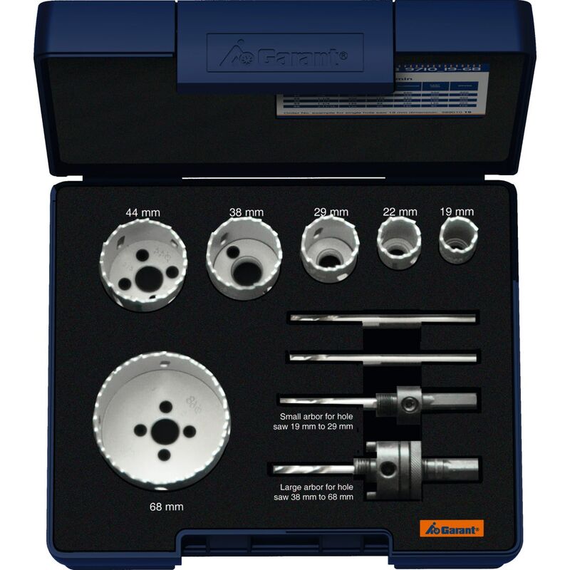 Set di seghe a tazza bimetalliche di diametri comuni. Con geometria vario-tooth in HSS per una lavorazione regolare e una durata elevata. Con inserto preciso in espanso rigido per una custodia sicura e un prelievo facile delle seghe a tazza. Box modulare impilabile. Fornitura: Custodia in plastica antiurto con seghe a tazza bimetalliche, attacchi e punte da centro. Dati tecnici Tipo di prodotto Sega da traforo Numero di attacchi 2 Numero di punte da centro 4 ⌀ Seghe a tazza, mm 19;
