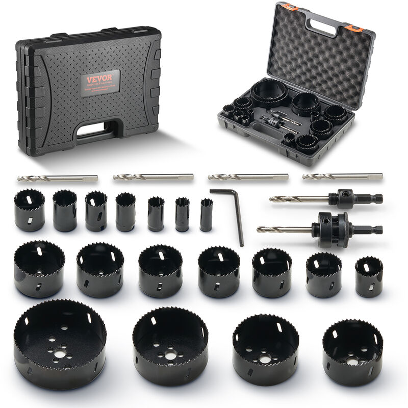 Kit Seghe a Tazza di VEVOR Sperimenta la miscela perfetta di velocità, durata e stabilità mentre affronti i tuoi progetti con facilità. Il set di seghe a tazza comprende 18 diametri diversi, garantendo un taglio regolare su diverse dimensioni. Con l'attacco rapido universale e un albero a cambio rapido altamente adattabile compatibile con diversi mandrini, passerai da un lavoro all'altro senza problemi. Gestisce una vasta gamma di materiali. Kit di seghe a tazza da 18 pezzi Installazione rapida universale Albero a cambio rapido ad alta adattabilità Profondità di perforazione migliorata Kit di Seghe a Tazza di VEVOR Kit di seghe a tazza è realizzata con materiali molto durevoli e resistenti, mantenendo ottime prestazioni anche con un uso prolungato. Il kit di 18 seghe a tazza con specifiche diverse garantisce versatilità per diverse dimensioni di foro. Caratteristiche principali Kit di Seghe a Tazza da 18 Pezzi: il set di seghe a tazza garantisce durata e stabilità, anche con un uso