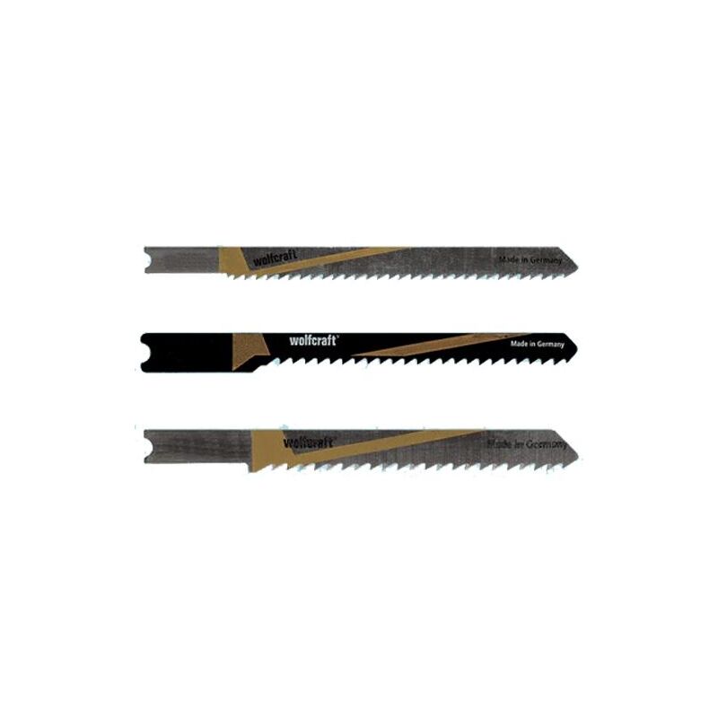 Lame HCS legno Wolfcraft per seghetti alternativi 230 - 237 Lame in HCS (acciaio ad alto tenore di carbonio) per seghetti alternativi, codolo attacco a U, profondità di taglio 20-50 mm. Lavorazioni di legni e plastiche. Confezione 2 pz. Art. 2370000 - Distanza denti 4 mm. - Lungh. 81