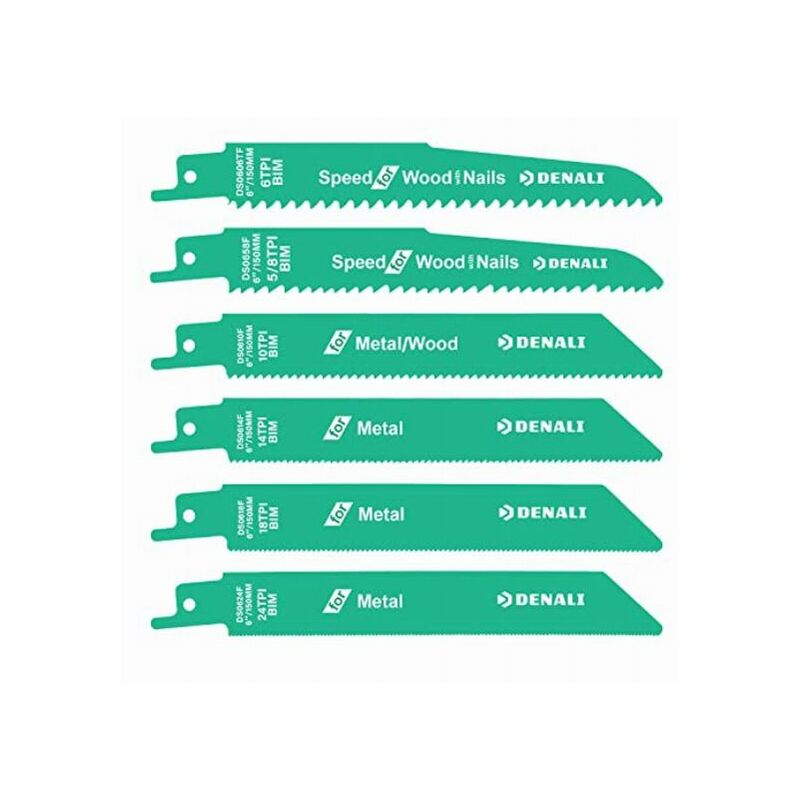 Denali - Set di 6 lame per seghetto alternativo in bimetallo (24T, 18T, 14T, 10T, 6T, 5-8T)
